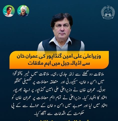 وزیراعلیٰ علی امین خان گنڈاپور کی آج عمران خان سے اڈیالہ...